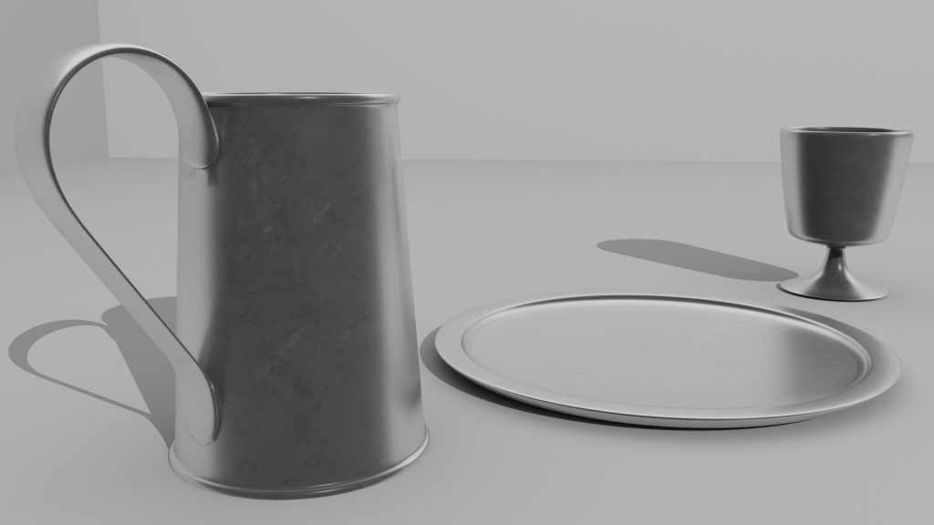 All the tables in the Tavern are adorned with Candelabras in either single or triple form, and various plates, goblets, and mugs. I would have liked to model some food to go on the tables, along with cutlery and more variations of tableware, but unfortunately, I did not have the time.