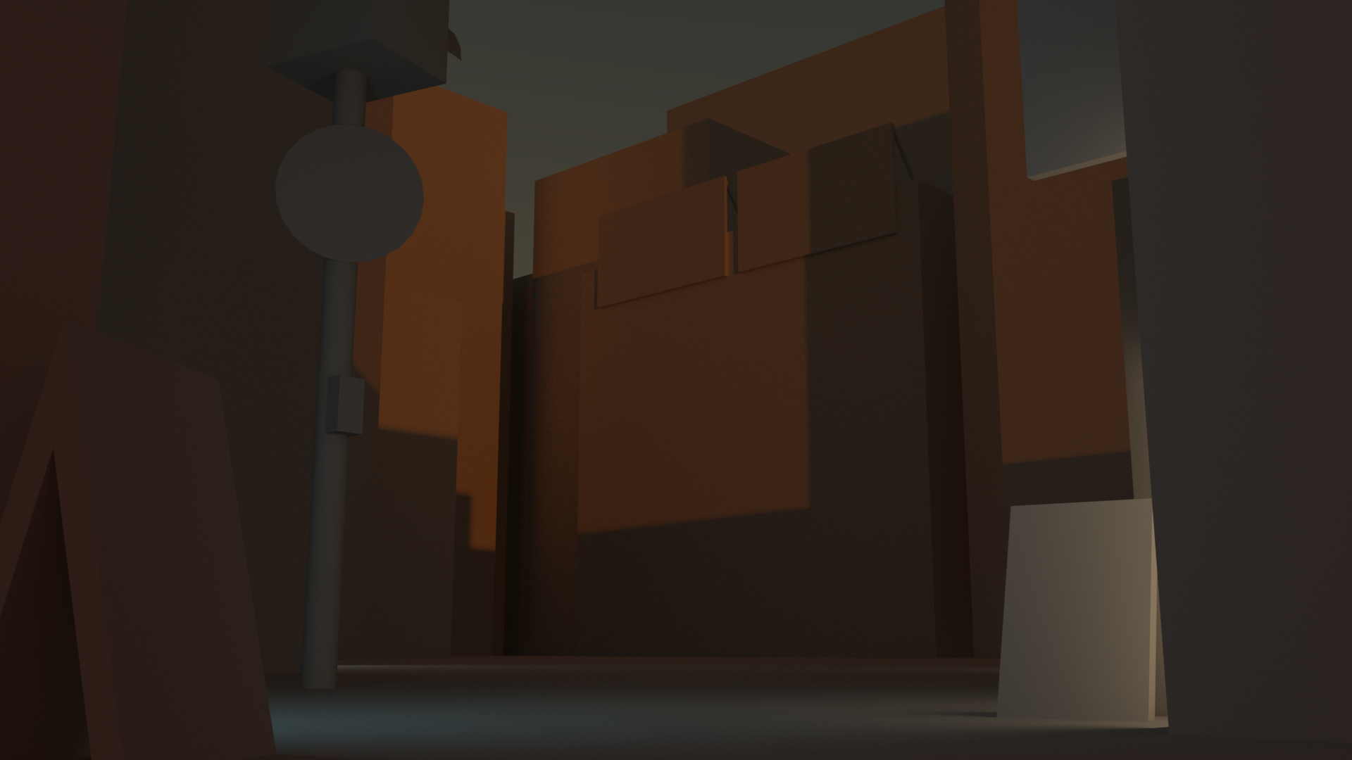 Basing mostly off of the first reference image, I began to lay out a scene in Maya to use as a base for my background drawing. After messing around with lighting and objects for a few hours I had a final background ready to render! Here are the maya outline images and the final background: