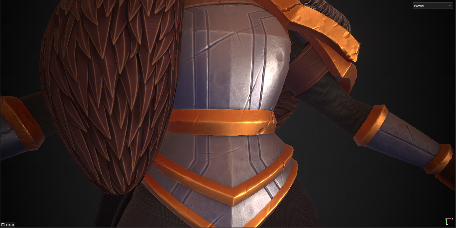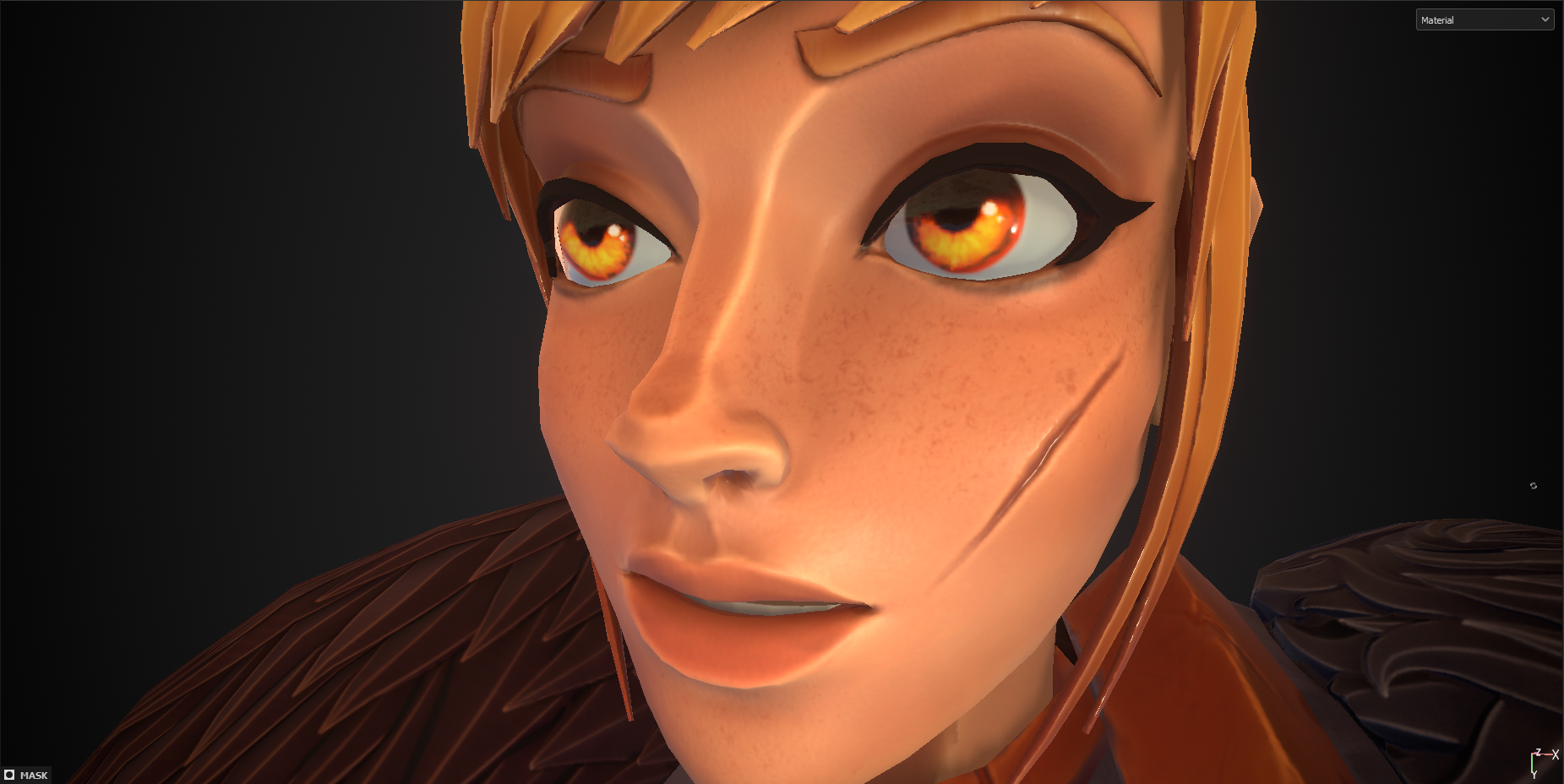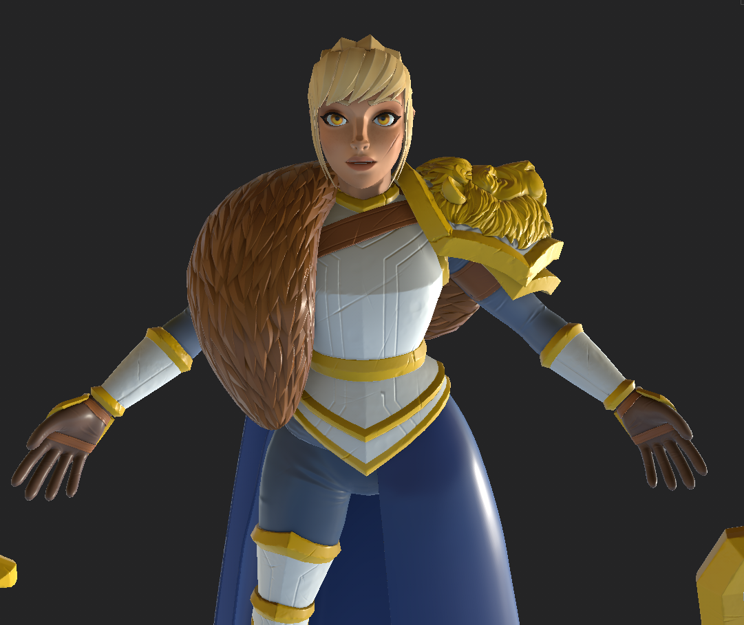 Aside from those changes, I tried to stick quite closely to my initial ideas, combining and mixing my own thoughts with inspiration references along the way. I’m pleased with the overall result, and I feel it reflects Leona’s personality quite closely. Below, I include some of my progress images and colour trials while texturing.