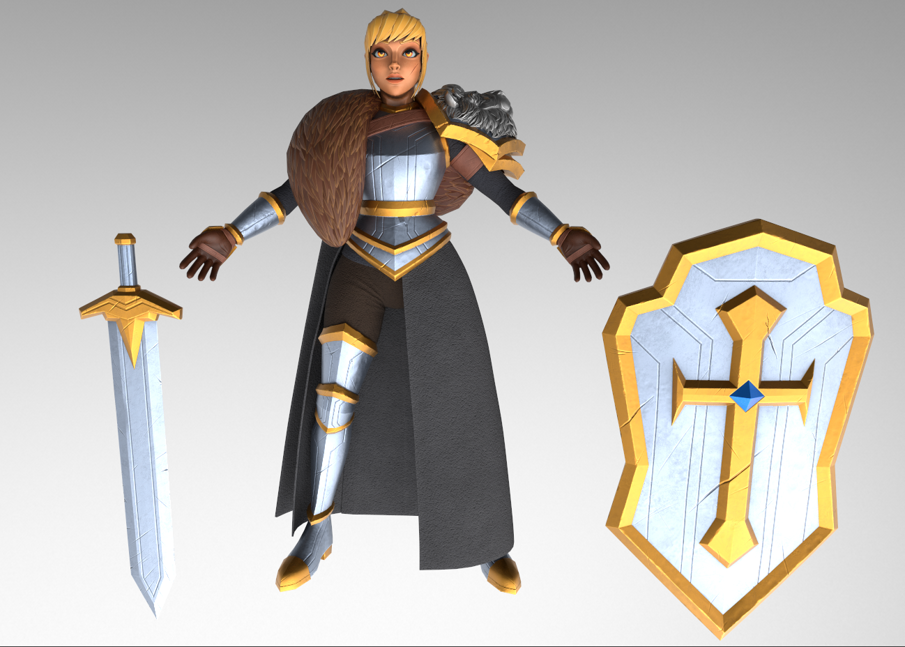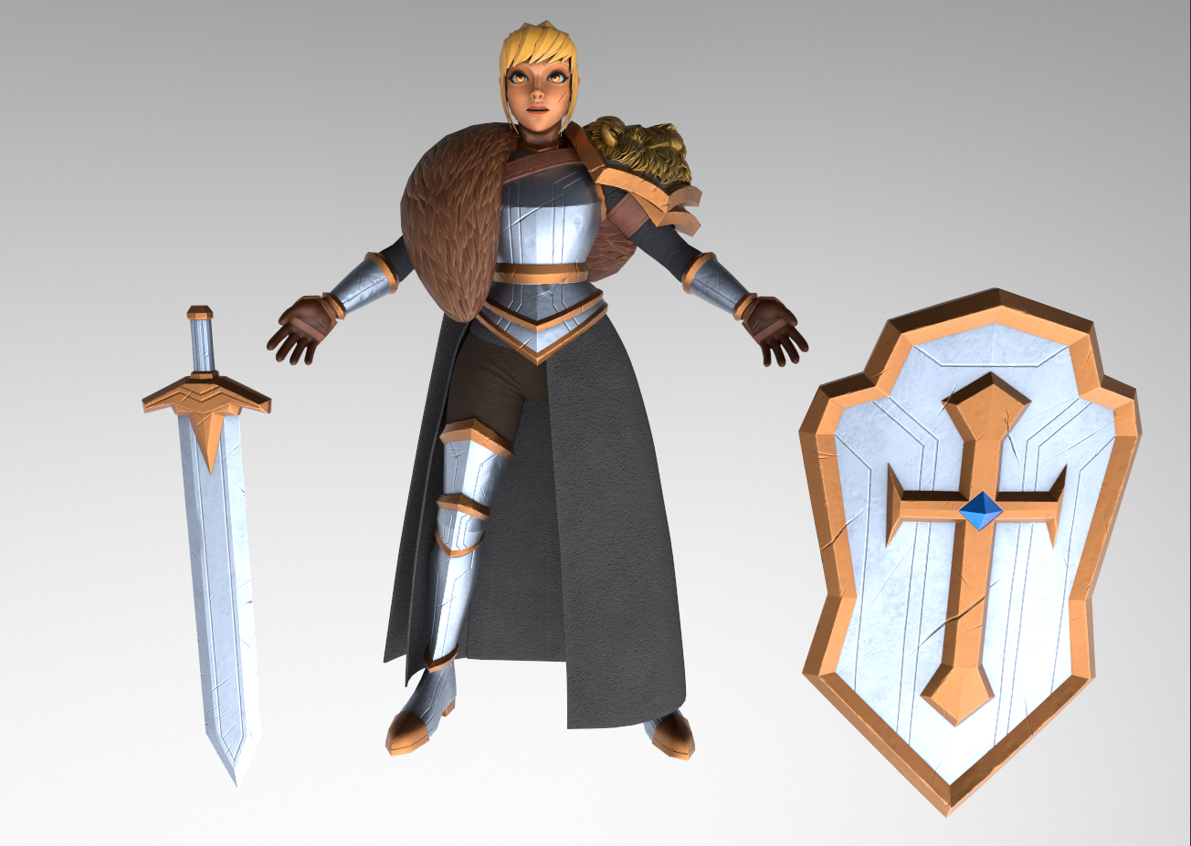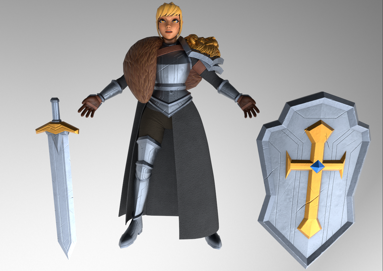 My final design differs in a few elements from my original intentions and original description. While texturing, I experimented with colour variations and decided that using white and blue cloth didn’t give Leona quite the realistic look I was going for. With white and blue cloth, she looked much more like a Fantasy game character and less like a Medieval game character. Therefore, I opted for darker black and brown materials to give her that Medieval Game of Thrones (HBO, 2011) / Dungeons and Dragons (Gygax and Arneson, 1974) look.