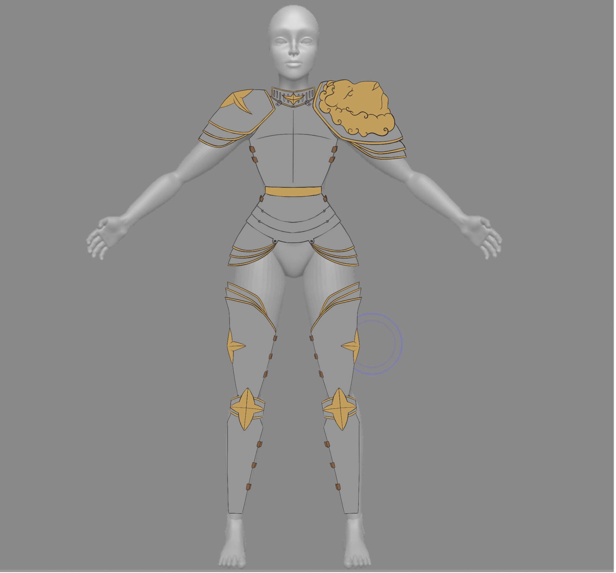 After completing the third image above, I stopped concepting and moved on to creating the assets, as I had a clear idea in my head of what I wanted. My illustration skills are not good enough to put down on paper exactly what I am picturing; therefore, it was better for me to start modelling. I based the armour design upon my concepts while altering it to be more masculine, using the Male armour references presented in the first post.
