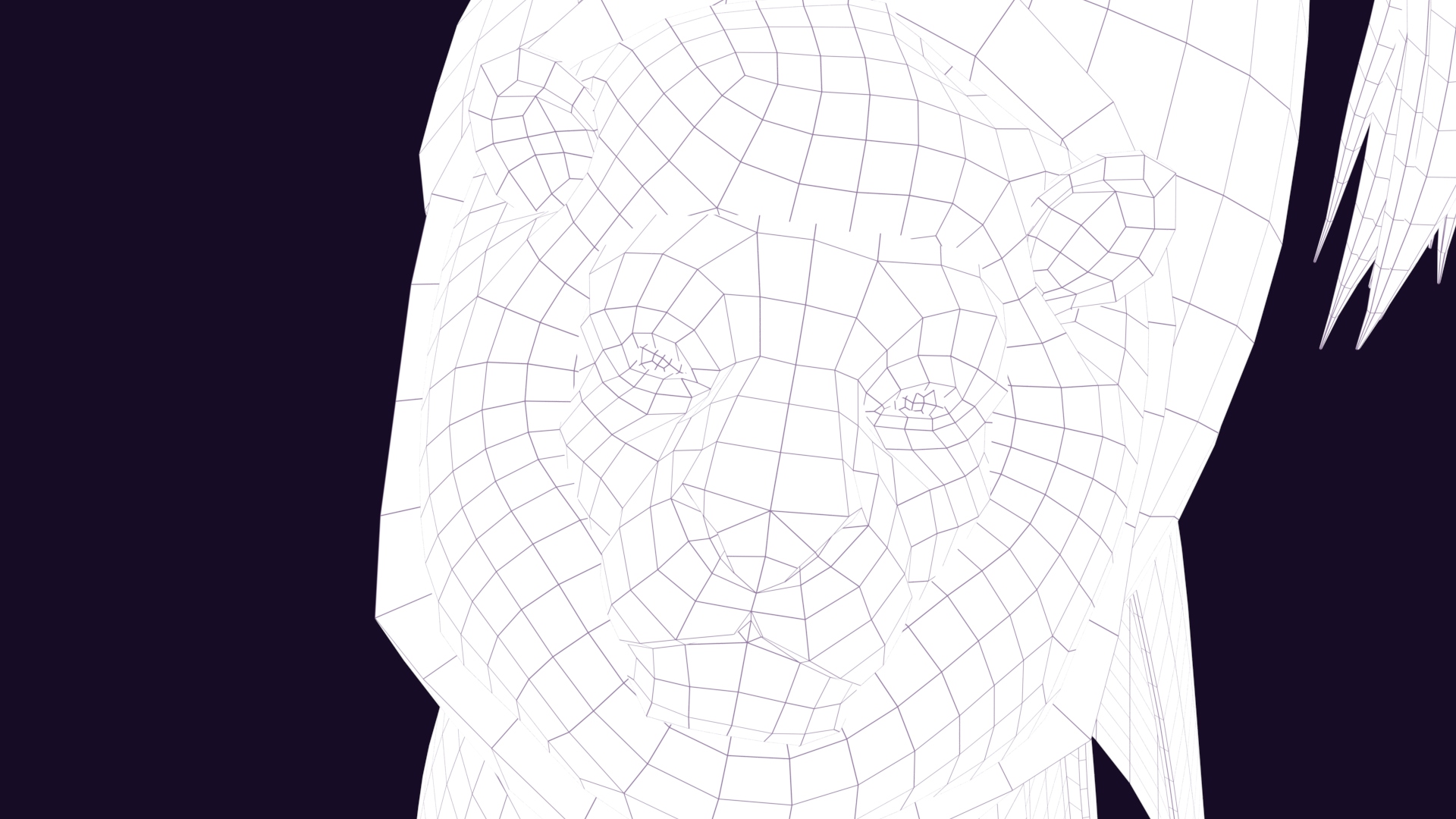 For components that were missing a low-poly form, I had to retopologise. I was able to use the ZRemesher function for assets such as the gloves and lion’s mane. However, with items such as the Lion’s face and all hard surface components, I had to manually retopologise in Maya. The body model was the most time-consuming of these components for manual retopology because the face was tough to create topology for.