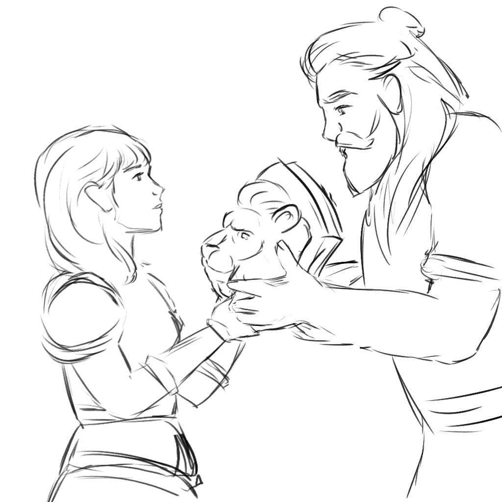 My animation will follow a very short narrative arc as Leona Lionheart talks through her backstory, specifically about the day she left to forsake her name and train to become a Golden Lion. It will begin with the “Setup”, where she talks about how she was inspired to become an adventurer; then there will be a “Conflict” – both internal and external – as her father finds out she’s leaving home; finally, the “resolution” as her father accepts her decision to leave.