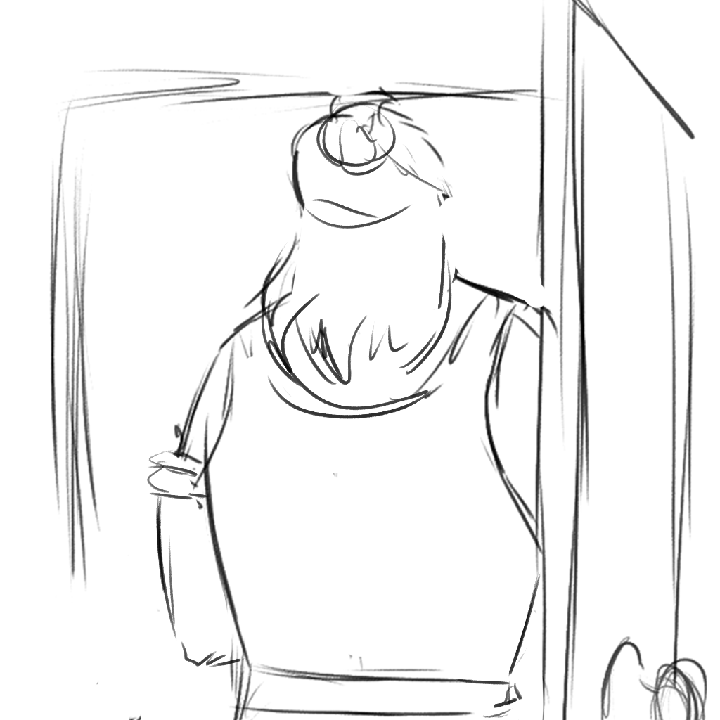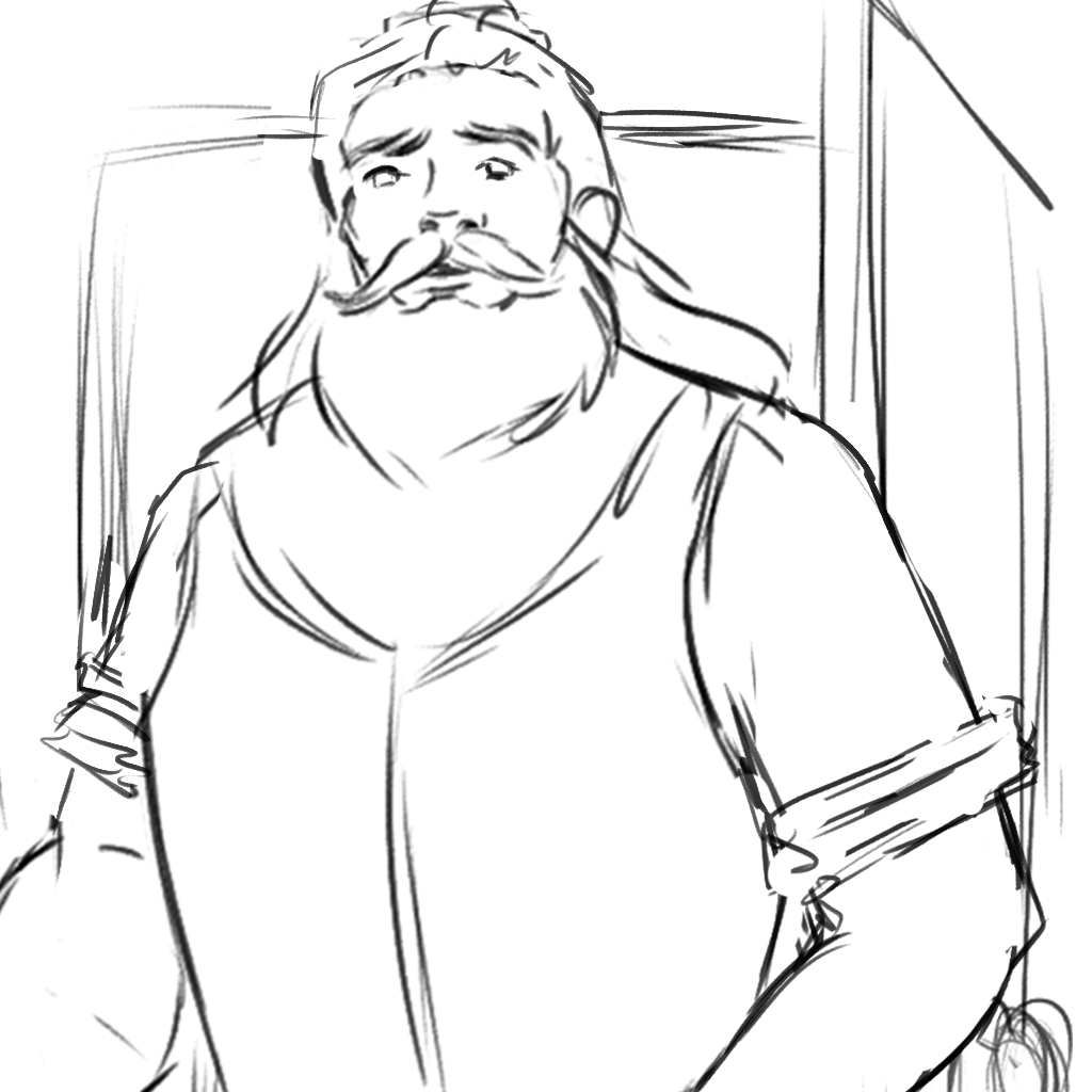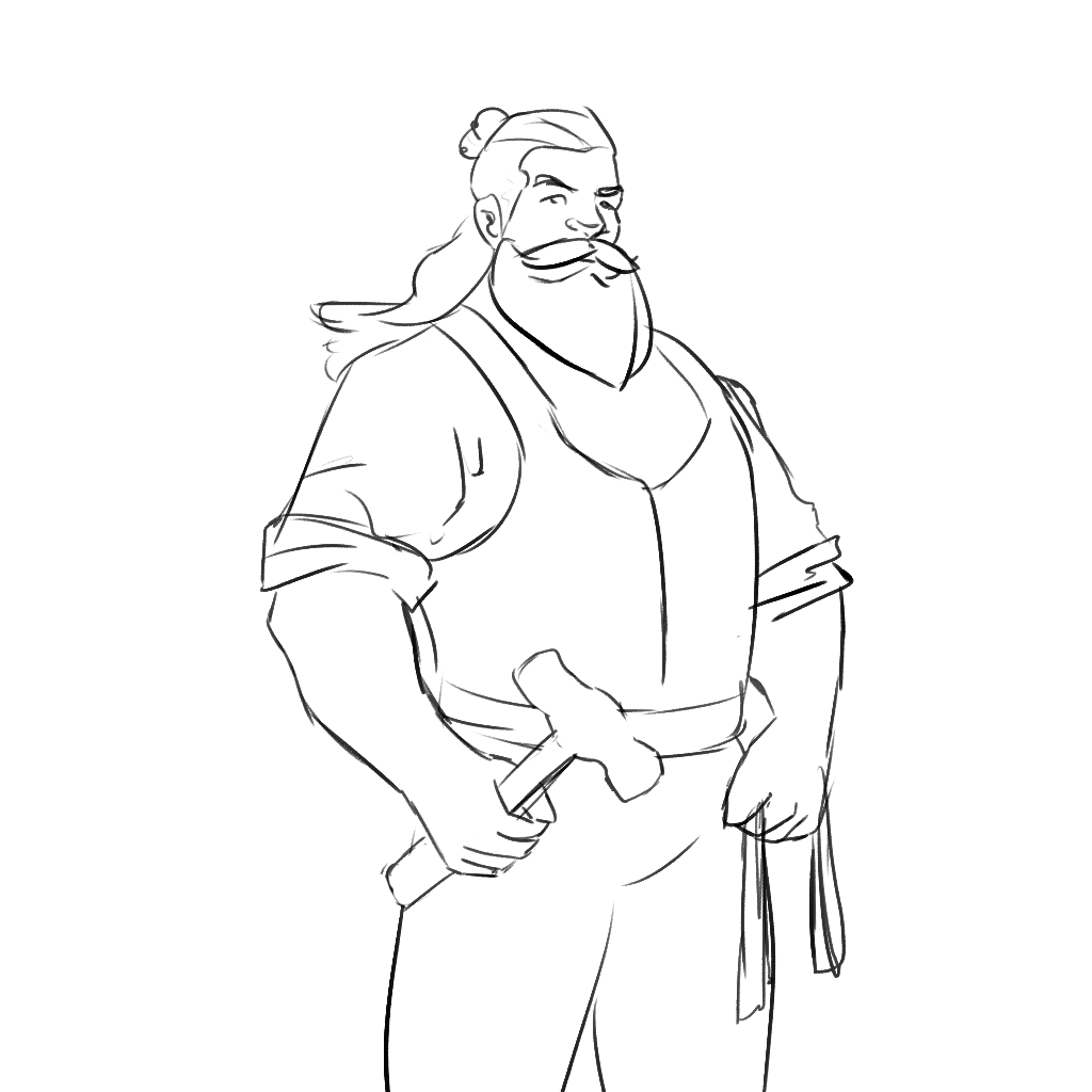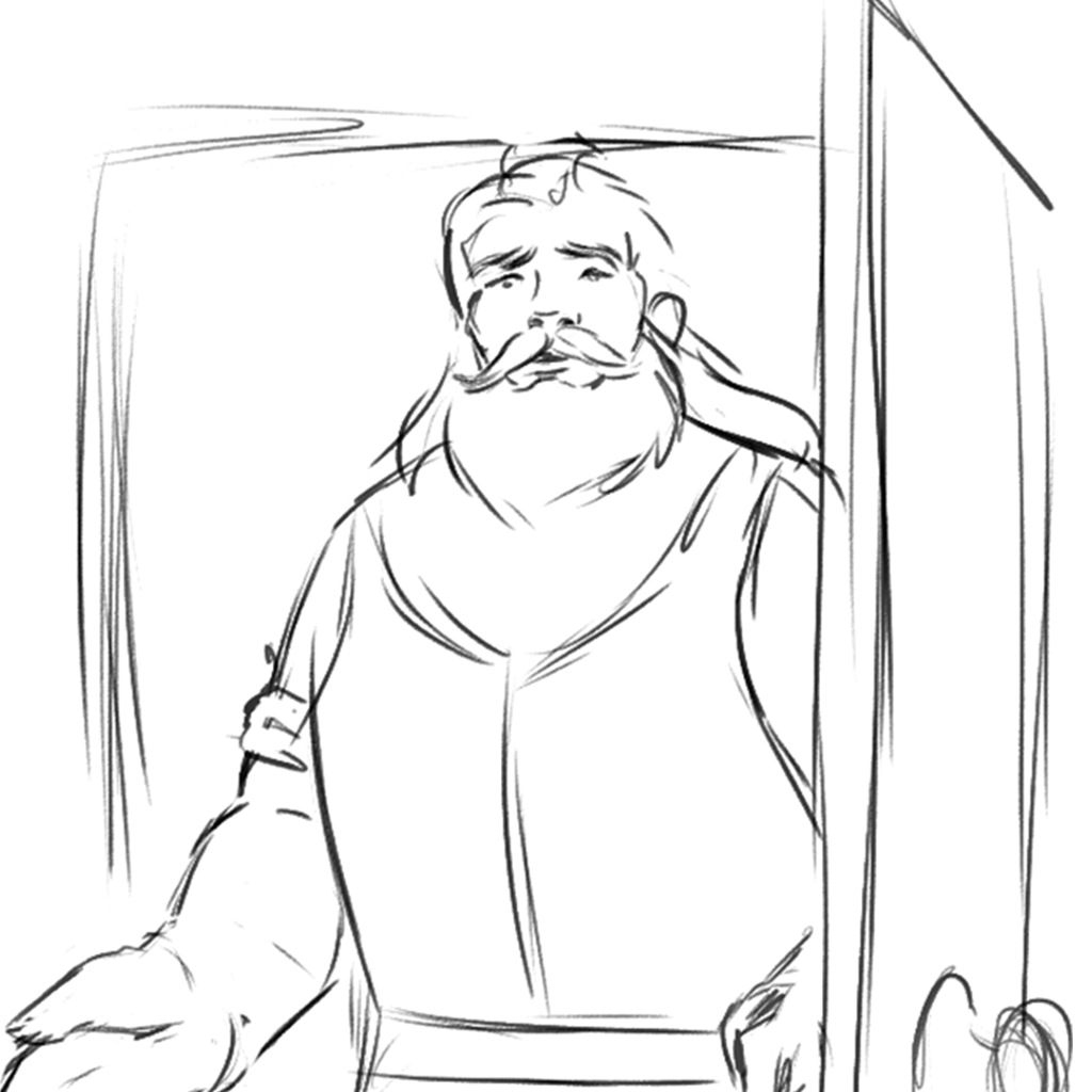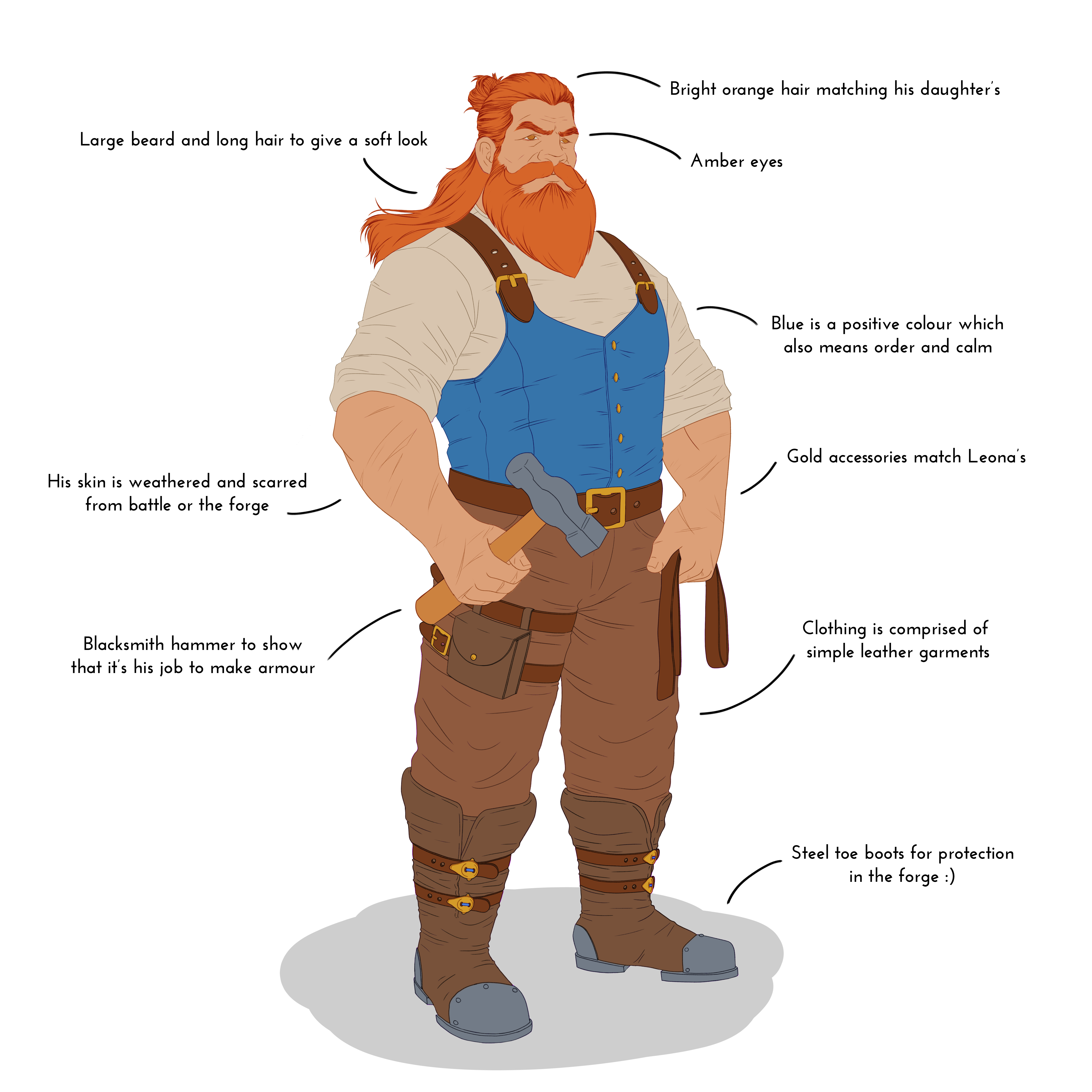 My character design for Leona’s father is unique to this animation, and I feel that the clothing detail shows how much I’ve progressed as an artist since my original design of Leona’s armour. I’ve tried to add enough character design elements to Brynor (Leona’s father) to identify them as related while also giving him elements consistent with his backstory.
